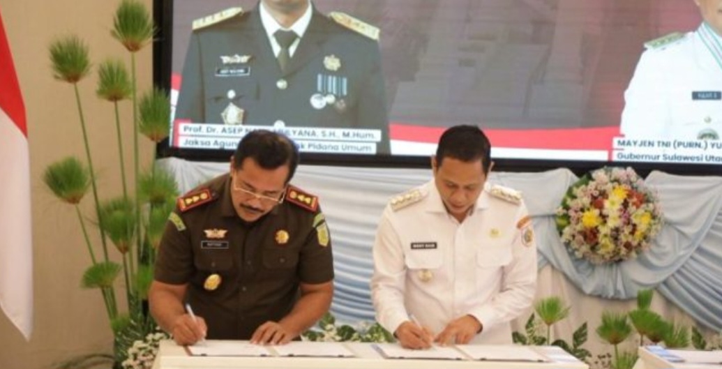 Penandatanganan ini turut dihadiri: Gubernur Sulawesi Utara, Mayjen TNI (Purn) Yulius Selvanus, S.E., Jampidum Kejaksaan Agung RI, diwakili Direktur A Dr. Hari Wibowo, S.H., M.H., Ketua DPRD Provinsi Sulut, dr. Fransiscus Silangen, Sp.B., Kbd., Kajati Sulut, Jacob Hendrik Pattipeilohy, S.H., M.H., Perwakilan Forkopimda Sulut, para bupati, wali kota, serta kepala kejaksaan negeri se–Sulawesi Utara.