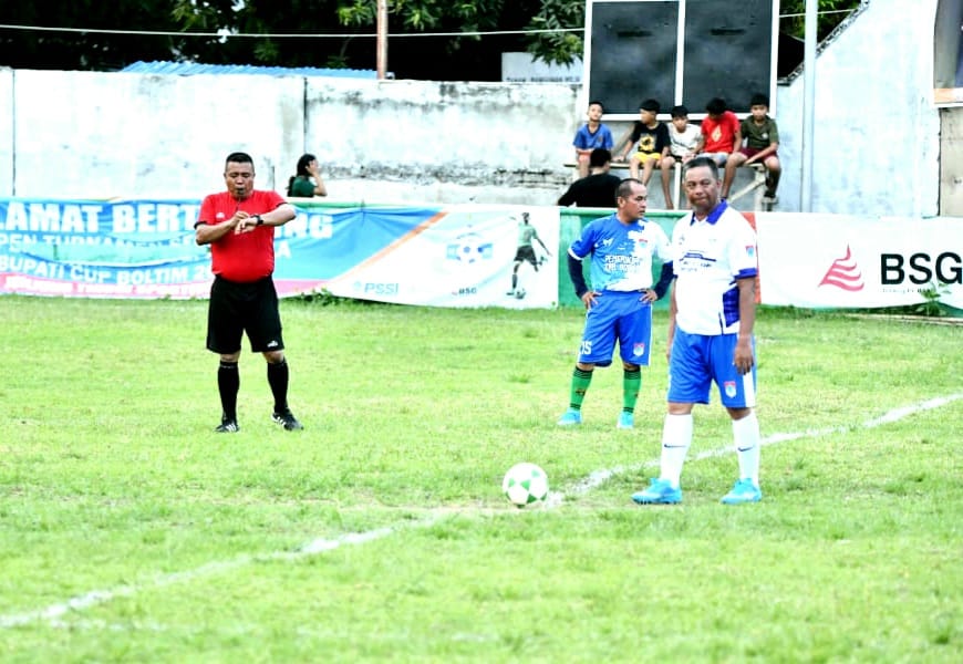 Gol ini menjadi motivasi besar bagi tim eksekutif, yang kemudian menambah keunggulan pada babak kedua. Di sela pertandingan, Ketua Tim Penggerak PKK Kabupaten Boltim, Ny. Rosita Manoppo-Pobela, hadir di tepi lapangan memberikan dukungan penuh. Kehadirannya disambut hangat oleh warga yang berbondong-bondong menyaksikan laga tersebut.